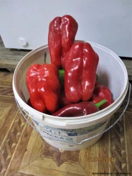 Для употребления в свежем виде, как указано в назначении сорта, лучше дождаться биологической спелости. Полностью вызревшие на кусте плоды с вишневой кожицей накапливают максимальное количество сахаров, витаминов и приобретают свойственный сорту яркий сладкий вкус. Именно такие перцы идеальны для салатов и также подходят для сбора собственных семян.