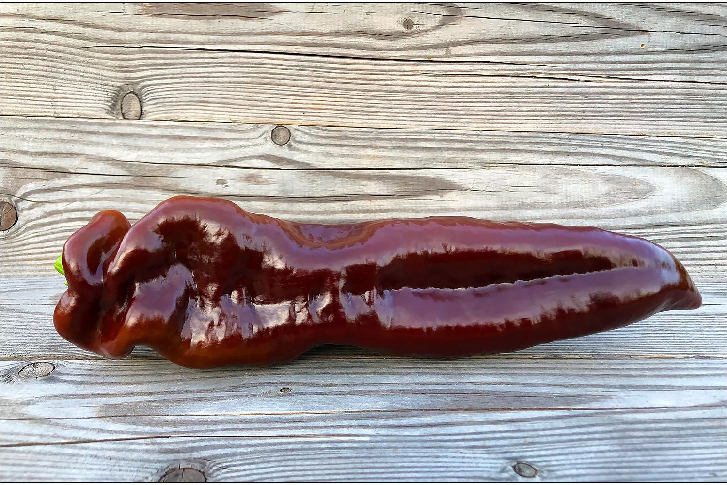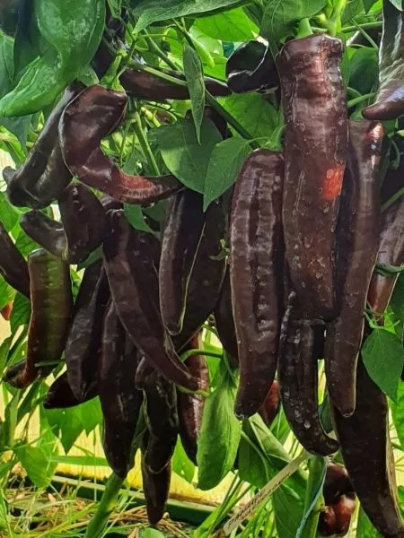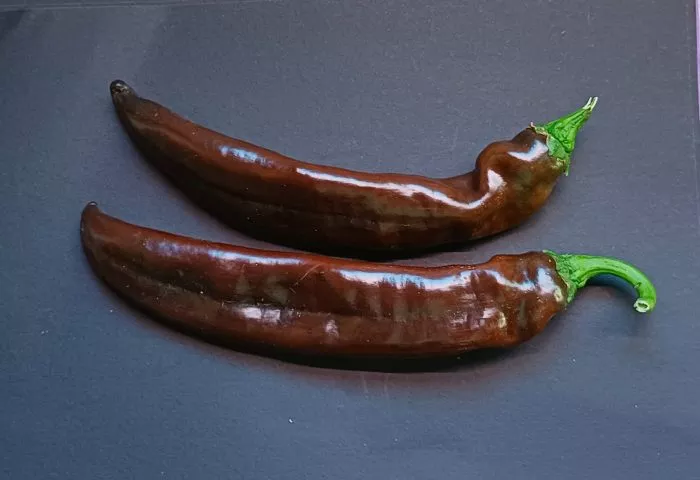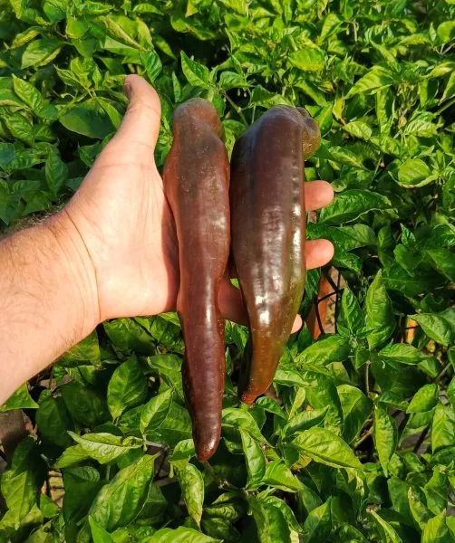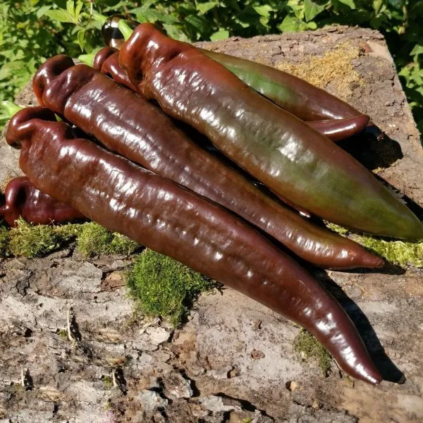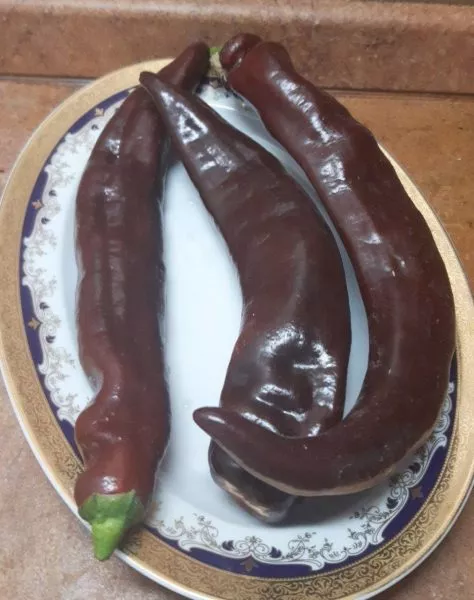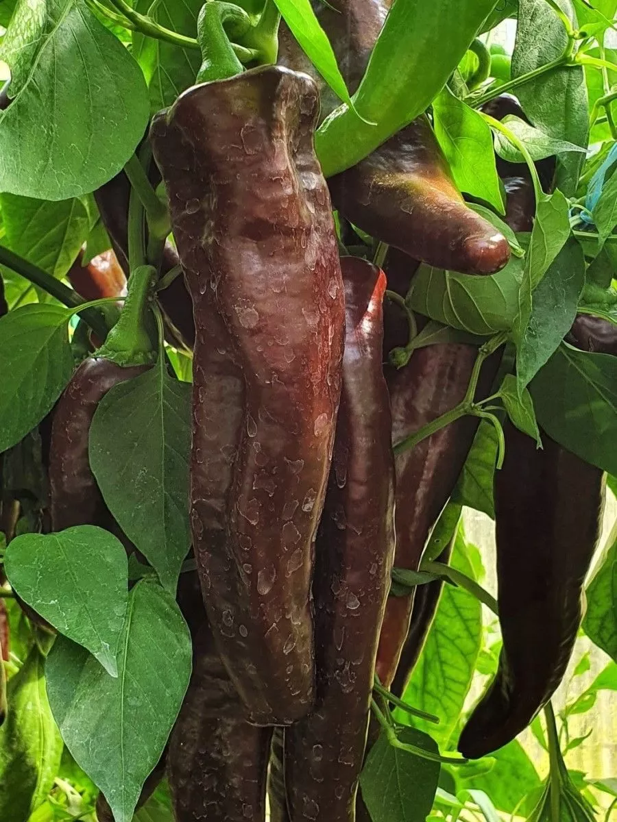 Шоколадная вариация полностью оправдала ожидания. Она унаследовала характерную тонкостенность и нежную, лишенную горечи мякоть. Главным же достижением стал устойчивый глубокий коричневый цвет кожицы в фазе полной биологической спелости. Этот оттенок не является результатом гибридизации с острыми сортами, а обусловлен накоплением специфических пигментов — антоцианов, что делает плод особенно привлекательным для свежего потребления и украшения кулинарных блюд.