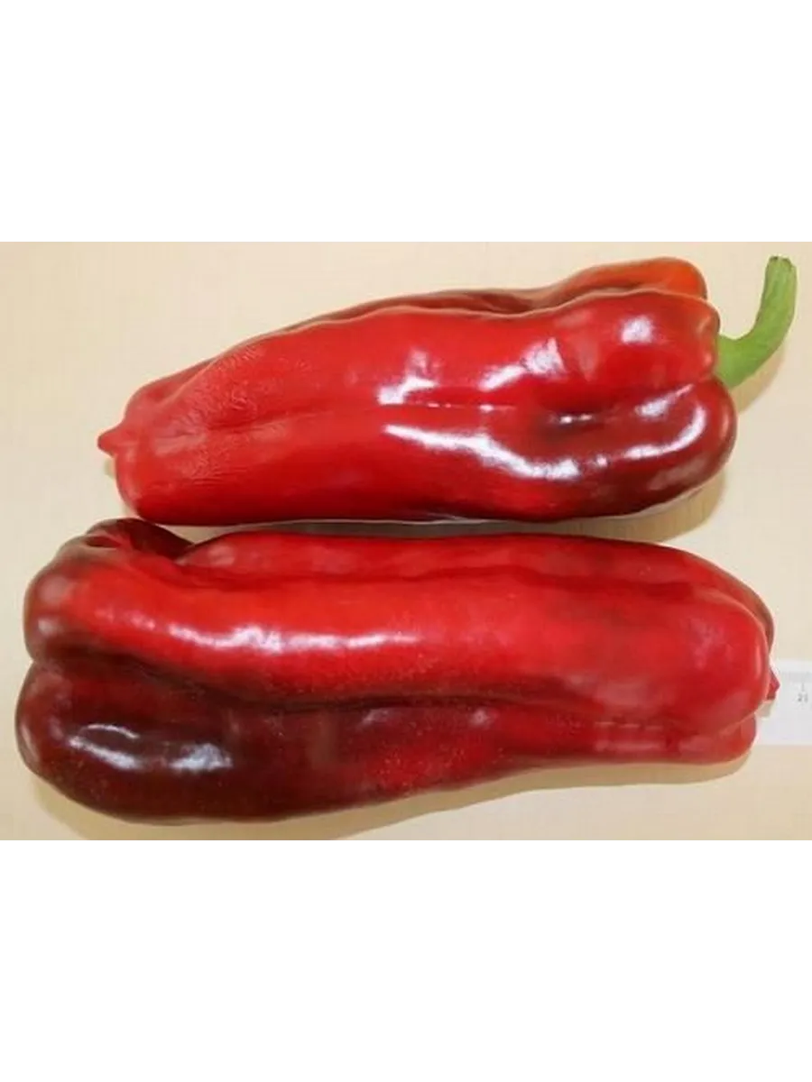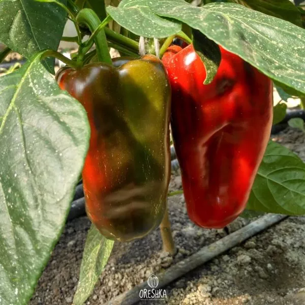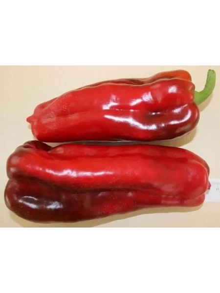 Плоды имеют классическую призмовидную форму, которая часто выглядит слегка вытянутой. Поверхность отличается выраженной ребристостью, особенно в области плодоножки. В фазе технической спелости перцы окрашены в темно-зеленый цвет и обладают характерным глянцевым блеском.