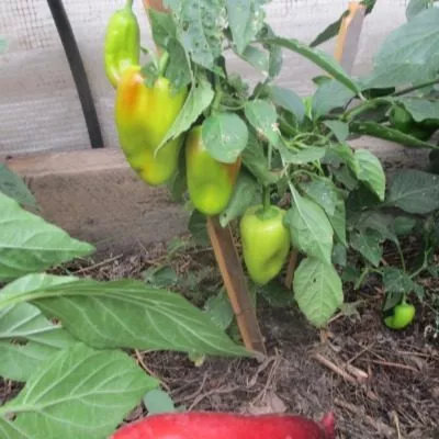 - Все плодоносящие побеги, особенно с наливающимися перцами, необходимо дополнительно подвязывать к опоре мягким материалом. Под тяжестью плодов, масса которых официально заявлена до 300 г, ветви могут легко обломиться.