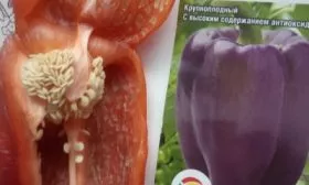 Наиболее яркая отличительная черта сорта — двухфазное изменение окраски. В фазе технической спелости, когда семена еще светлые и мягкие, а плод достиг максимальных размеров, кожица приобретает насыщенный темно-фиолетовый, почти чернильный оттенок. В этот момент перец уже пригоден для употребления в пищу, нарезки в свежие салаты или для фаршировки.
