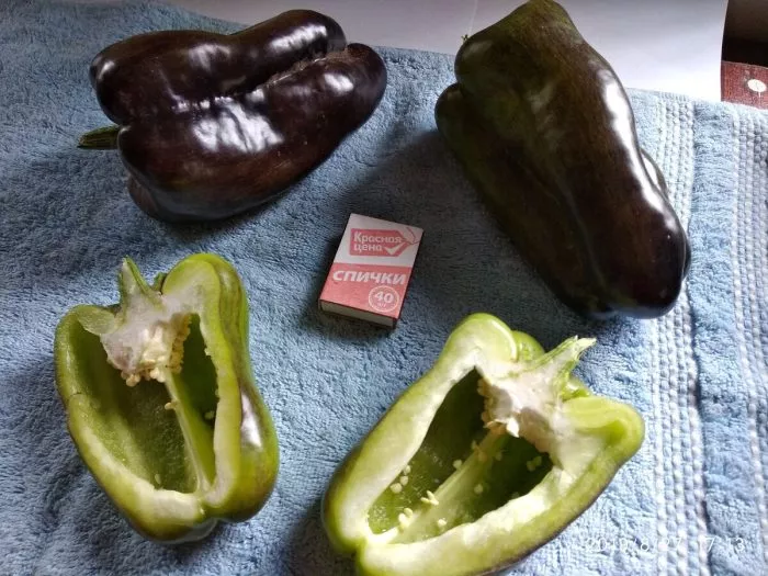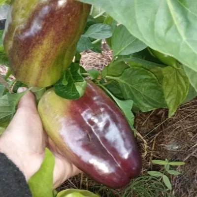 Наиболее яркая отличительная черта сорта — двухфазное изменение окраски. В фазе технической спелости, когда семена еще светлые и мягкие, а плод достиг максимальных размеров, кожица приобретает насыщенный темно-фиолетовый, почти чернильный оттенок. В этот момент перец уже пригоден для употребления в пищу, нарезки в свежие салаты или для фаршировки.