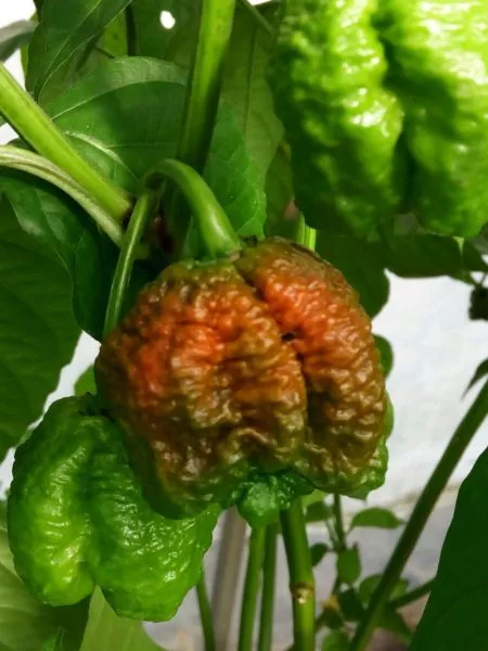 Плоды являются самой выразительной частью растения. Их масса, как указано в характеристиках, составляет 15-16 грамм, что классифицирует их как мелкие. Форма округлая, но не идеально гладкая: поверхность часто бывает сильно бугристой и морщинистой, что является визитной карточкой многих сверхострых сортов.