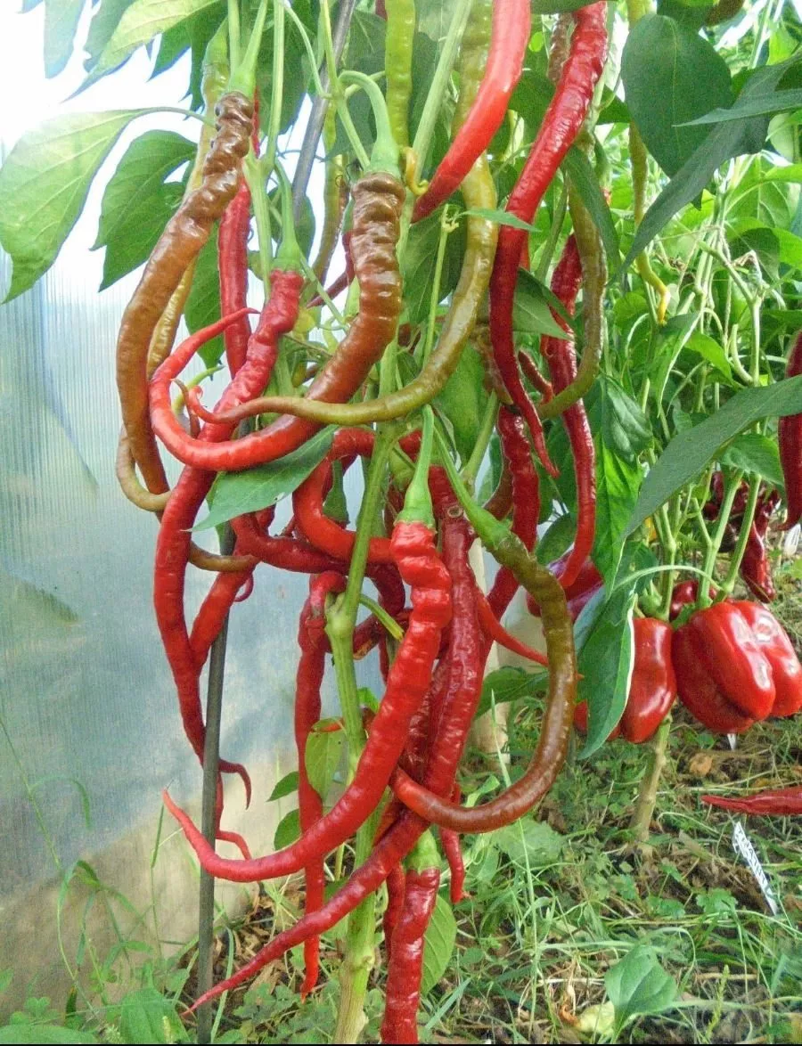 Поскольку созревание не одновременное, один куст бывает усыпан «змейками» всех цветов переходной палитры — от зелёного до красного. Это создает фантастически декоративный вид, превращая грядку или теплицу в яркий акцент.