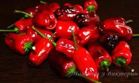Мякоть у них тонкая, но при этом достаточно плотная и хрустящая, что является преимуществом для консервирования и сушки. Вкус соответствует классическому представлению о перце: выраженный перечный аромат сочетается с заметной сладостью у плодоножки. Острота присутствует отчетливо, но ее уровень умеренный и не является запредельным.