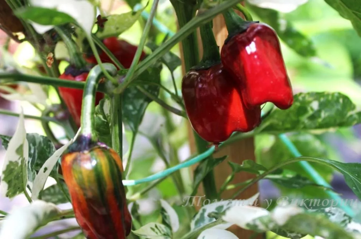 Главная визуальная особенность — необычайно эффектный вид куста в фазу плодоношения. На одном растении одновременно присутствуют перцы разной степени зрелости: от почти черных в технической спелости до ярко-красных в биологической. Добавляют палитру промежуточные фиолетовые и оранжевые оттенки. Такое многоцветье, напоминающее экзотический букет, полностью оправдывает название сорта и делает его украшением огорода.
