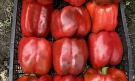 Такой однородный, «товарный» вид всего урожая упрощает как упаковку для продажи, так и подготовку к консервированию, где важна равномерность нарезки. Крупные размеры и вес делают эти перцы очень эффектными в свежих нарезках и салатах.