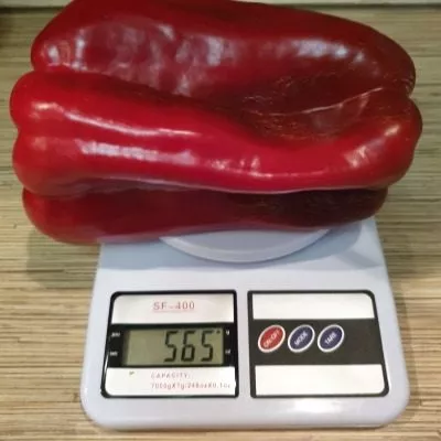 Истинная гордость сорта – его плоды, полностью оправдывающие название. Стандартный вес одного перца составляет 300-400 граммов. При стабильном поливе, полноценном питании и благоприятных условиях отдельные экземпляры могут наливаться и крупнее.