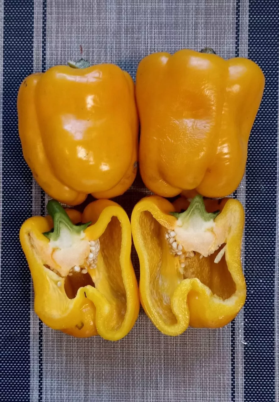 В технической спелости перцы имеют насыщенный зеленый цвет, но своей настоящей «золотой» спелости они достигают позже, приобретая ярко-желтую, солнечную окраску. Именно в этой биологической фазе полностью раскрывается их отличный вкус. Такое сочетание крупного размера, идеальной формы и нарядного цвета делает урожай не только пищевым продуктом, но и элементом декора огорода.