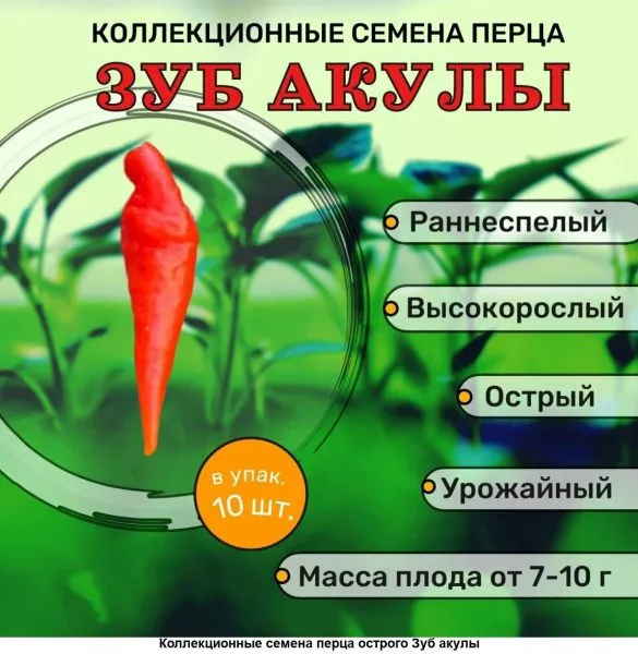 Полностью высушенные семена хранят в бумажном пакете с подписанным названием сорта и годом сбора. Место для хранения должно быть сухим и прохладным. Важно помнить, что сорт «Зуб акулы» может переопыляться с другими видами перца, поэтому для чистоты сорта на участке следует соблюдать пространственную изоляцию.