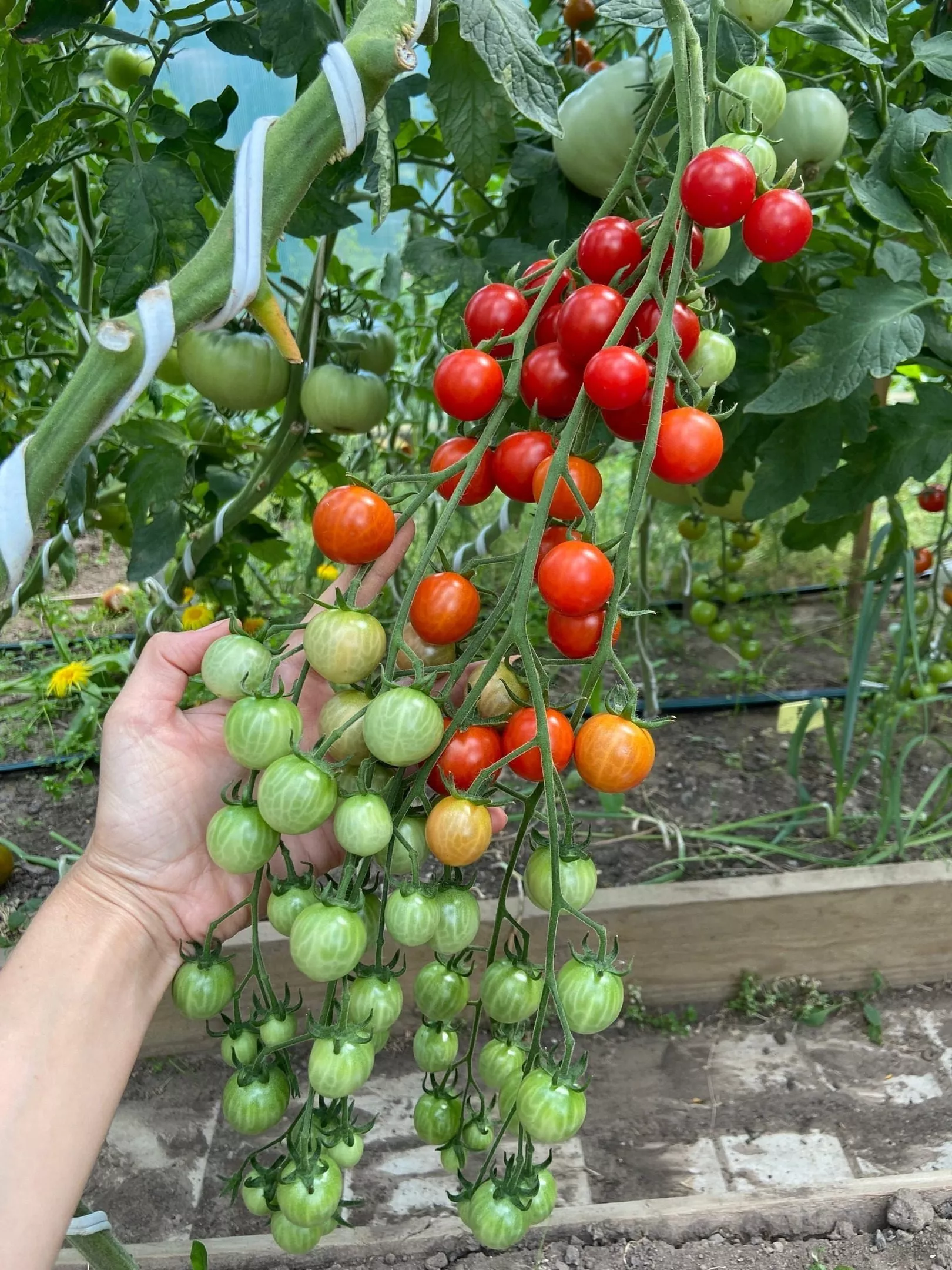 Верхушку основного стебля прищипывают за месяц до окончания сезона, чтобы все завязавшиеся плоды успели налиться и созреть. Для средней полосы это обычно делают в конце июля или начале августа. Подвязывать стебель и тяжелые плодовые кисти нужно регулярно, по мере роста, используя мягкие ленты или шпагат.
