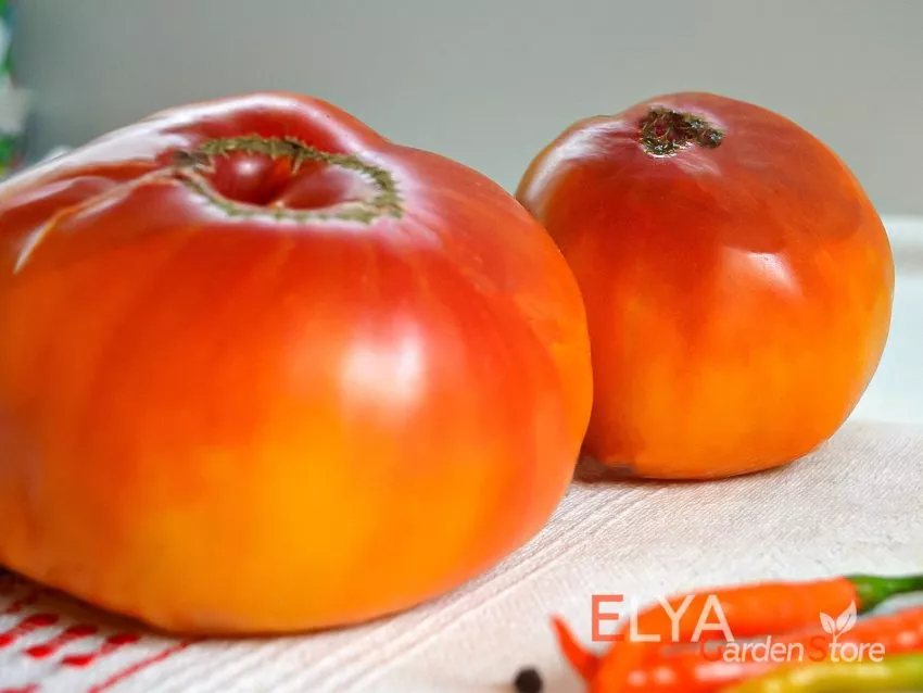 Плоды завязываются в кистях. Их классическая плоскоокруглая форма, слегка приплюснутая у плодоножки и основания, обеспечивает хорошую устойчивость на поверхности. Такая форма не только эстетична, но и практична для нарезки.