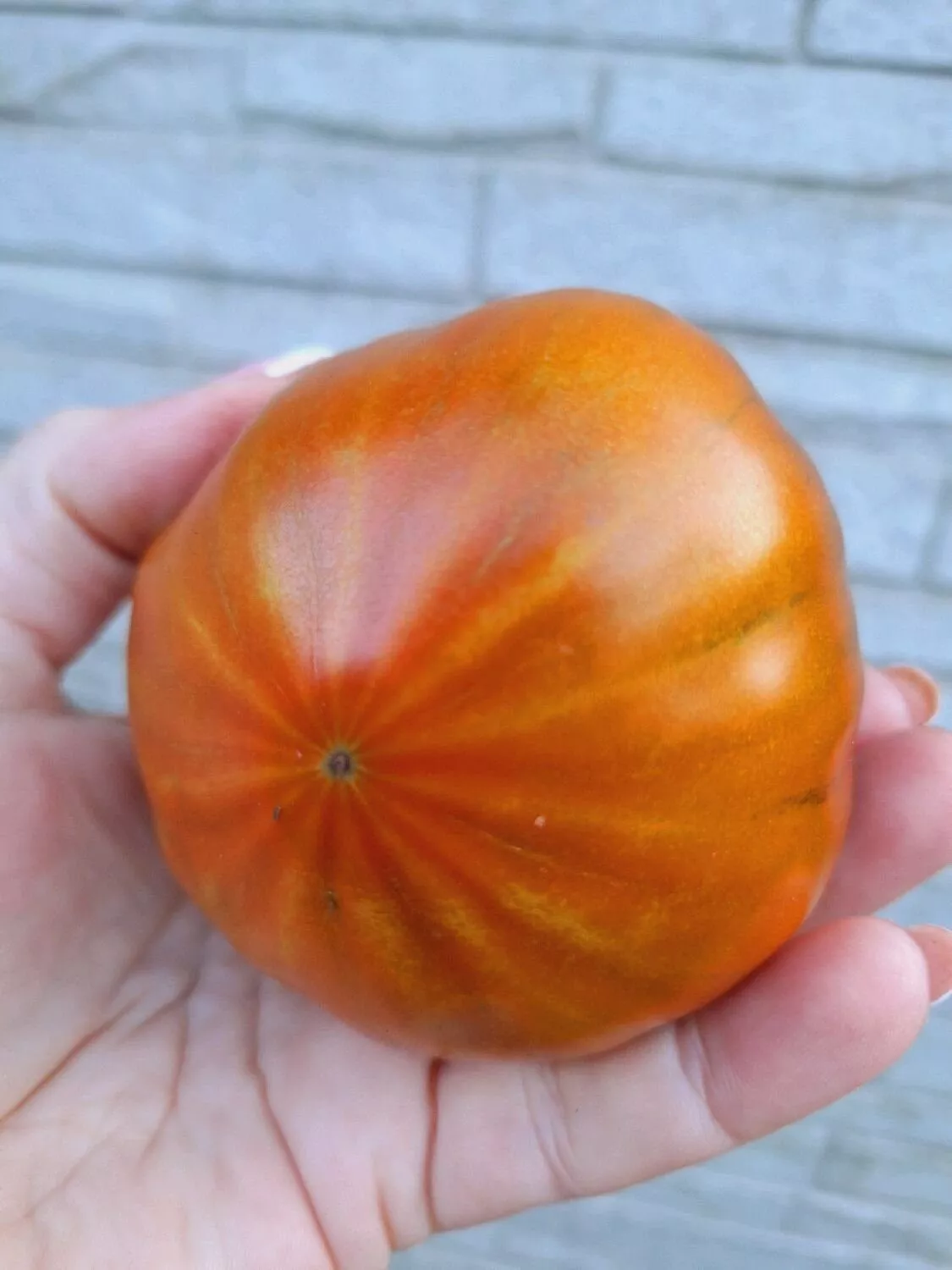 Форма плодов плоскоокруглая, с заметной приплюснутостью у полюсов. У основания часто наблюдается выраженная, иногда «пышная» ребристость, которая придает томату характерный рельеф. Средняя масса составляет 200-300 граммов, что относит сорт к крупноплодным.