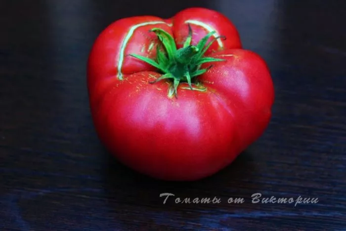Форма плодов плоскоокруглая, часто с хорошо заметной ребристостью в области плодоножки. При достижении биологической спелости кожица приобретает равномерный насыщенный розовый цвет без зеленого пятна у основания. Тонкая, но плотная кожица надежно удерживает мякоть, однако ее прочность имеет предел.