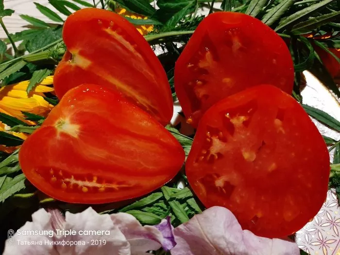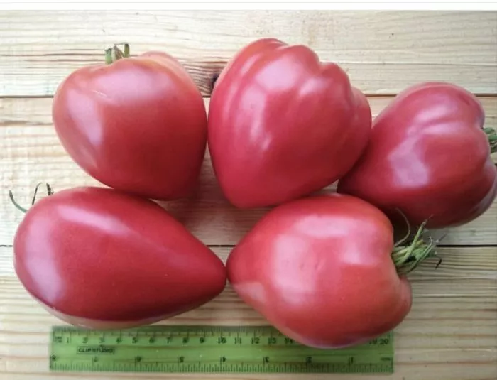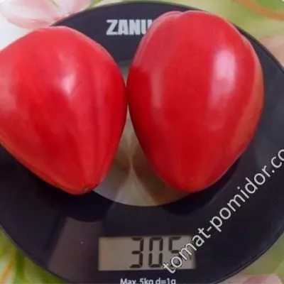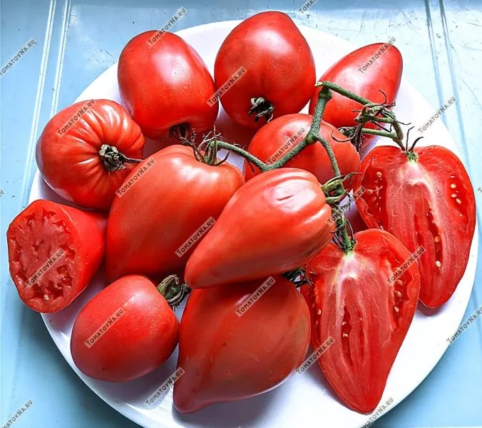 Кожица у плодов прочная, но не грубая, что в сочетании с мясистой консистенцией защищает их от растрескивания при соблюдении режима полива. Внешний вид этих гигантских «сердец» малинового цвета делает сорт одним из самых эффектных на участке.