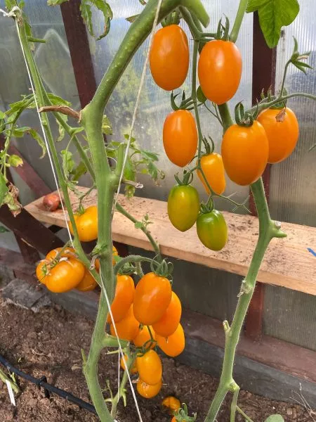 - Обеспечьте высокую и прочную опору. По мере роста стебель подвязывают мягкой лентой или шпагатом под каждой цветочной кистью. Это особенно важно из-за высокой урожайности и массы плодов.