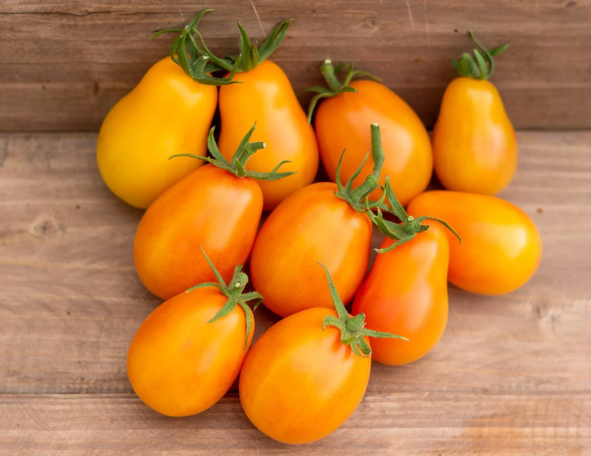 Основной цвет зрелого томата — насыщенный желтый. Однако под воздействием интенсивного солнечного света и высоких температур в кожице синтезируются каротиноиды, что приводит к появлению розовых или оранжевых подтонов, румянца и полос. Этот градиентный эффект наиболее выражен на плодах, открытых прямому солнцу.