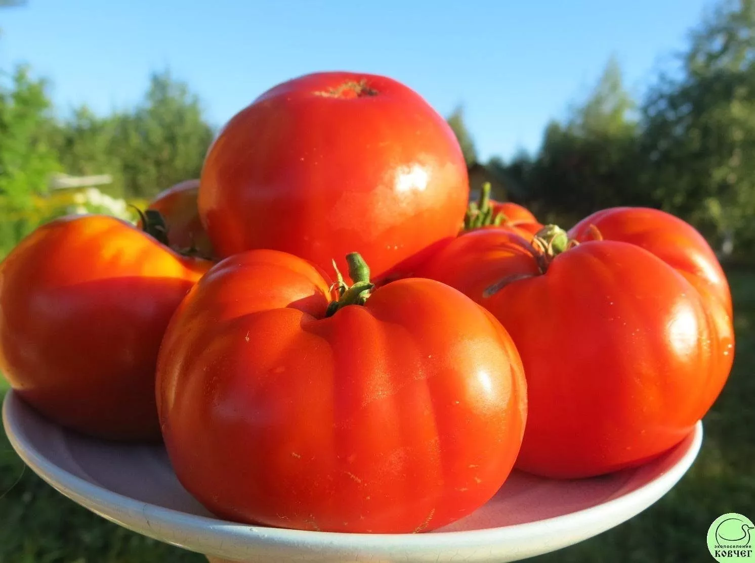 | Возможность сбора собственных семян (не гибрид F1). | В открытом грунте северных регионов плоды могут не достигать заявленной максимальной массы. | Интенсивно красный цвет и плоскоокруглая форма плода. |