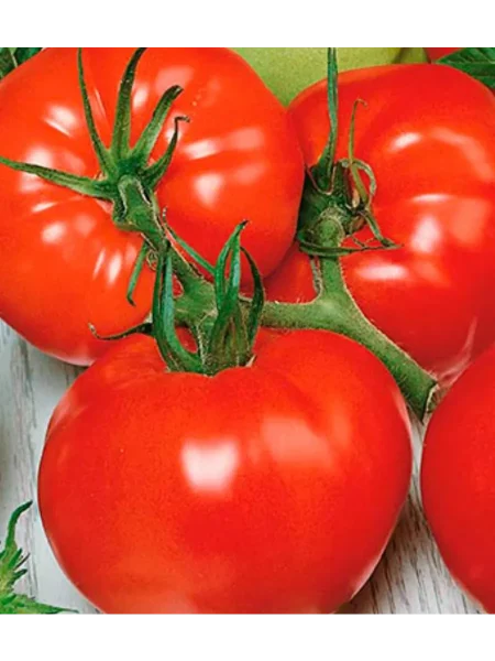 Плоды — главная гордость этого сорта. Их форма классическая, «бифштексная»: плоскоокруглая, с выраженной ребристостью у плодоножки. Ребристость становится более заметной у самых крупных экземпляров. Плоды многокамерные, с небольшим количеством семян. В стадии полной зрелости они приобретают насыщенный ярко-красный цвет.