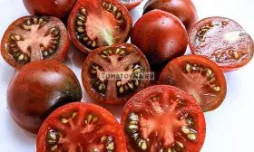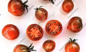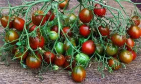 Плоды некрупные, выровненные, массой 20-30 граммов. Они формируются в длинные, часто разветвленные сложные кисти, где может одновременно созревать большое количество помидоров. Такое строение кисти визуально создает впечатление очень высокого урожая и придает растению декоративный вид.