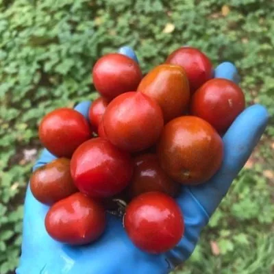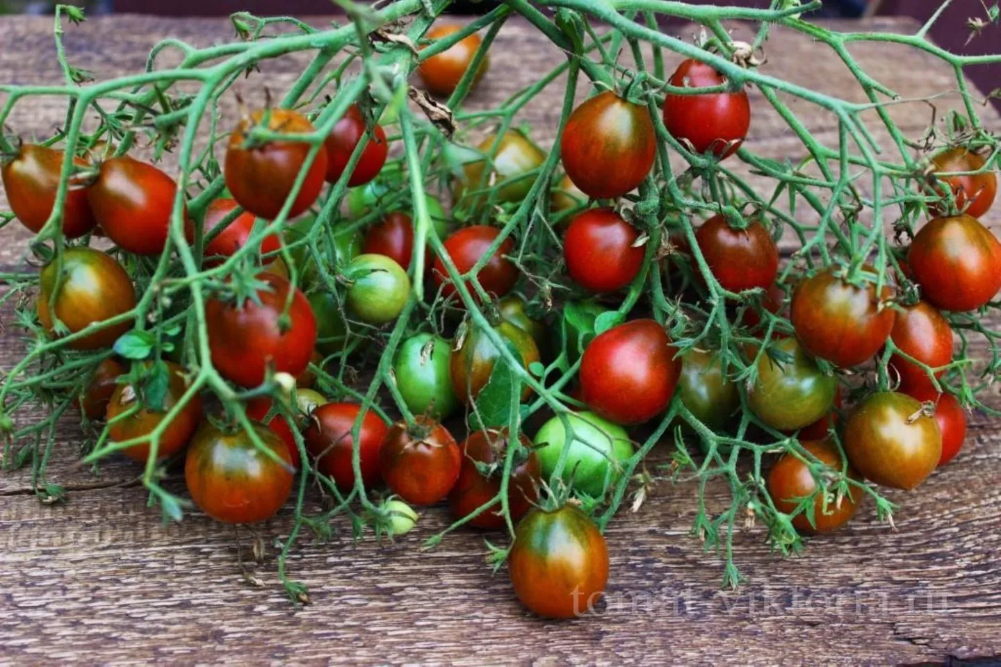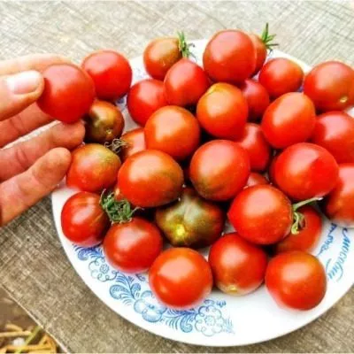 Плоды некрупные, выровненные, массой 20-30 граммов. Они формируются в длинные, часто разветвленные сложные кисти, где может одновременно созревать большое количество помидоров. Такое строение кисти визуально создает впечатление очень высокого урожая и придает растению декоративный вид.