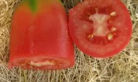Истинной визитной карточкой сорта являются сами томаты. Их форма – вытянутый цилиндр с изящным заостренным носиком на конце, что и дало сорту название. Длина плодов обычно составляет 10-12 см. В фазе технической спелости они светло-зеленые, а при полном созревании равномерно набирают насыщенный розовый цвет без зеленого пятна у плодоножки.