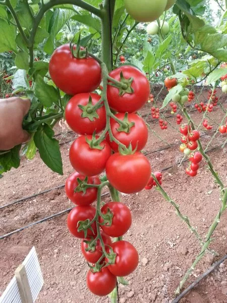Внешний вид налитых кистей настолько декоративен, что этот сорт часто выращивают не только для еды, но и для украшения теплицы. Плодоношение растянутое, благодаря индетерминантному типу роста новые кисти продолжают закладываться до конца вегетационного периода.
