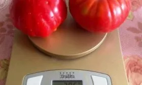 Плоды относятся к категории крупных, их средняя масса соответствует заявленным 400 граммам. При нормировании завязей и оптимальном уходе отдельные экземпляры могут наливаться и сильнее. Полностью созревшие томаты приобретают равномерный, насыщенный красный цвет без зеленого пятна у плодоножки.