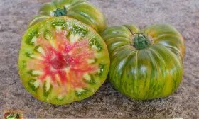 Мясистая, малосемянная мякоть с преобладанием сладости идеальна для приготовления густых соусов, лечо, сока и особенно «золотого» томатного супа-пюре. При термической обработке насыщенный красно-малиновый цвет с зелеными полосками трансформируется в красивый оранжево-желтый оттенок.