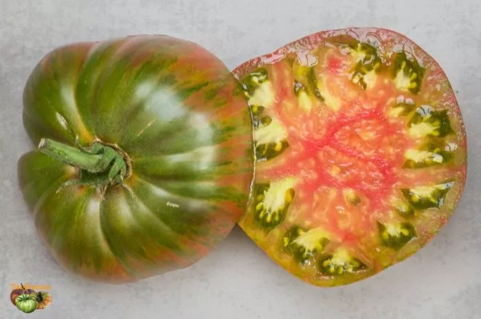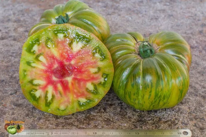 Мясистая, малосемянная мякоть с преобладанием сладости идеальна для приготовления густых соусов, лечо, сока и особенно «золотого» томатного супа-пюре. При термической обработке насыщенный красно-малиновый цвет с зелеными полосками трансформируется в красивый оранжево-желтый оттенок.