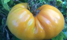 Плодовые кисти закладываются через каждые три листа. Плоды плоскоокруглой формы, часто с заметной ребристостью в области плодоножки, что является сортовым признаком. Средняя масса в 300-400 граммов достигается при стандартном уходе. Для получения томатов-гигантов требуется нормирование количества завязей в кисти, оставляя не более 3-4 самых сильных.