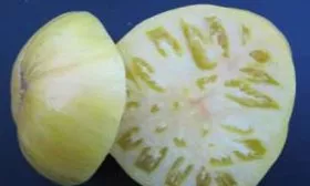 Мякоть в зрелом состоянии мясистая, многокамерная, сочная, с небольшим количеством семян. Консистенция не водянистая, что делает сорт особенно ценным для получения густого, насыщенного сока с высоким содержанием сухих веществ.