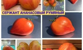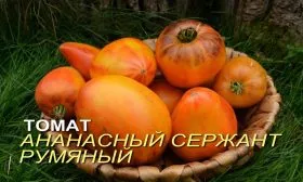 Название сорта носит описательный характер и напрямую отсылает к его уникальным чертам. Слово «Ананасный» указывает на сложную, многоцветную окраску зрелого плода, в которой сочетаются желтые, оранжевые и малиновые тона, что визуально напоминает тропический фрукт. Определение «Сержант» подчеркивает мощный, высокорослый и крепкий «стан» индетерминантного растения, которое требует надежной опоры и формирования. Эпитет «Румяный» дополняет описание, акцентируя внимание на ярком, румяном бочке плода, который становится особенно выраженным при полном созревании на солнце.