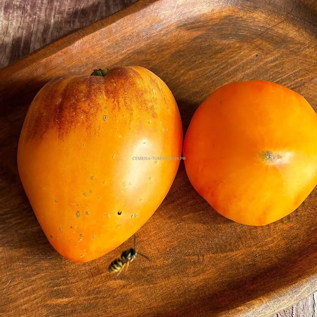 Цвет зрелого плода, как указано в характеристиках, «оранжево-малиново-желтый». Это не однородный оттенок, а многослойный градиент. В стадии технической спелости томаты зеленые с характерным темно-зеленым пятном у плодоножки.