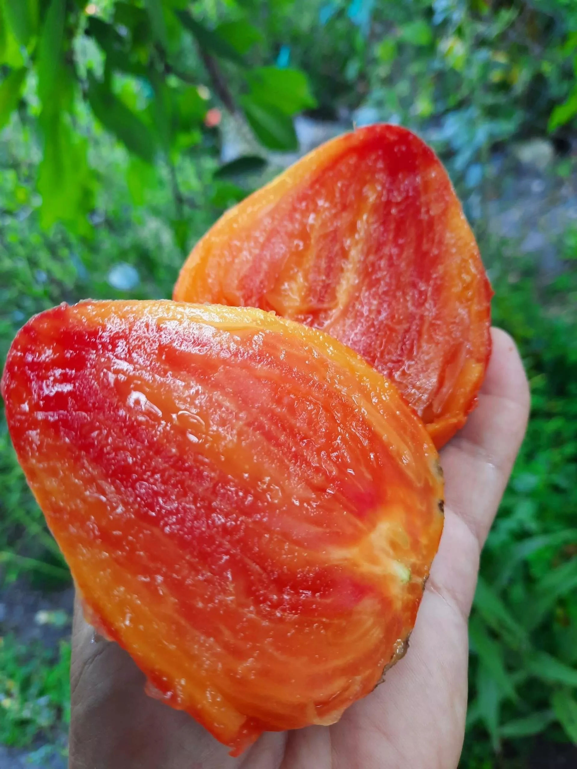 Польза плодов напрямую связана с их нестандартной окраской. Комбинация оранжево-малиново-желтых оттенков в мякоти указывает на высокое содержание разных полезных пигментов.