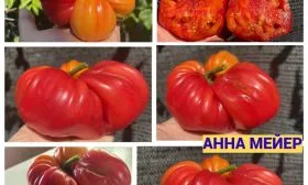 Главная отличительная черта «Анны Мейер» — выраженный полиморфизм (разнообразие формы) плодов. Это не случайное явление, а устойчивый сортовой признак. На одном растении одновременно могут формироваться классические плоскоокруглые и ярко выраженные сердцевидные томаты. Причем эта вариативность часто наблюдается в пределах одной кисти, что является редкой и ценной декоративной особенностью.