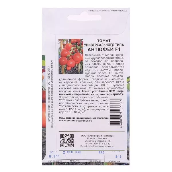 Антюфей — гибрид первого поколения (F1), что обеспечивает ему комплексную устойчивость к болезням и выравненность плодов. Его главная отличительная черта — экстремально широкая географическая адаптация. Сорт официально рекомендован для выращивания во всех регионах Российской Федерации, что является уникальным случаем и свидетельствует о его высокой пластичности к различным климатическим условиям.