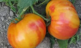 Плоды завязываются кистями. Из-за их крупного размера, достигающего 400-500 граммов, на одной кисти формируется ограниченное количество томатов. Плоды имеют характерную плоскоокруглую форму с хорошо заметной ребристостью у плодоножки. Ребра не глубокие, а скорее выраженные, что придает томату узнаваемый внешний вид.