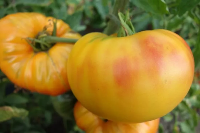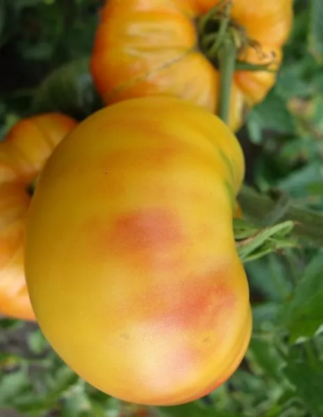 Сбор урожая проводят в стадии полной биологической спелости, когда плоды набрали характерный желтый цвет с розовым румянцем. Именно в этот момент раскрывается их гармоничный вкус со сладостью в послевкусии. Снимать крупные, массой 400-500 граммов, томаты нужно особенно бережно, поддерживая снизу, чтобы не оторвать плодоножку и не повредить нежную кожицу.