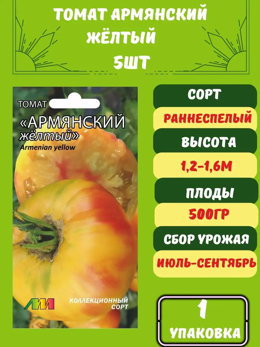 Среди многообразия томатов сорт «Армянский желтый» выделяется необычным видом и отличным вкусом. Это среднеспелый индетерминантный сорт, дающий крупные, до 500 граммов, плоскоокруглые плоды солнечно-желтого цвета с розовым румянцем. Его гармоничный вкус со сладким послевкусием и универсальность в выращивании заслуживают внимания как опытных огородников, так и энтузиастов. Давайте подробнее изучим его особенности, сильные стороны и нюансы агротехники.