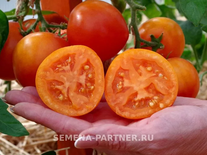 Главная отличительная особенность — плоды. Их ярко-оранжевый цвет, указанный в характеристиках, является доминантным визуальным признаком. Окраска в биологической спелости равномерная, без зеленого или желтого пятна у плодоножки.