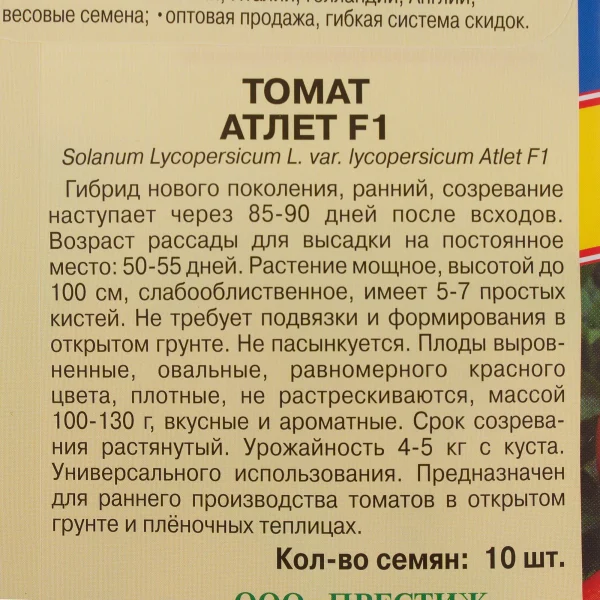 Томат Атлет — это гибрид первого поколения, что отражено в маркировке F1 на упаковке семян. Это означает, что он получен путем контролируемого скрещивания родительских линий для закрепления конкретных полезных признаков. Главная практическая особенность для огородника — семена с таких растений не сохраняют сортовых качеств, их нужно покупать заново каждый сезон.