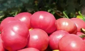 Плоды — главная гордость гибрида. Они имеют классическую округлую форму, часто слегка приплюснутую у плодоножки. Цвет зрелого томата — насыщенно-розовый, равномерный, без зеленого или желтого пятна у основания.