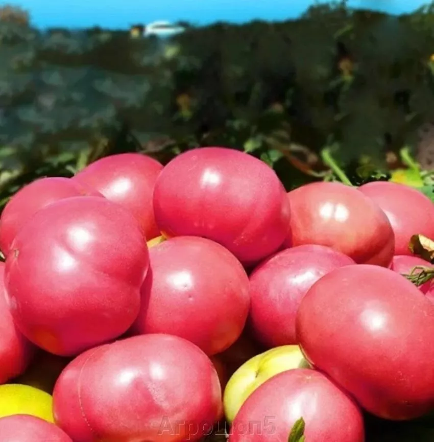 Плоды — главная гордость гибрида. Они имеют классическую округлую форму, часто слегка приплюснутую у плодоножки. Цвет зрелого томата — насыщенно-розовый, равномерный, без зеленого или желтого пятна у основания.