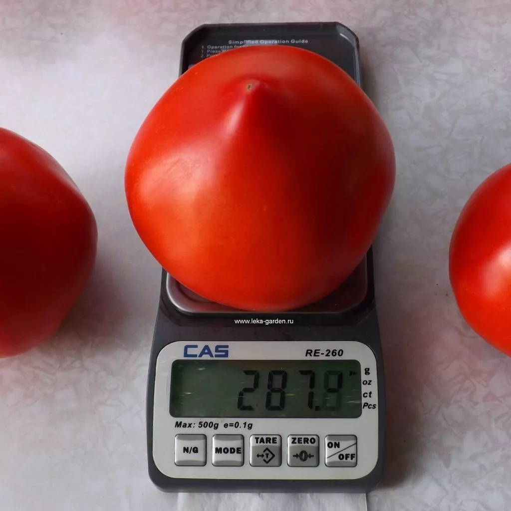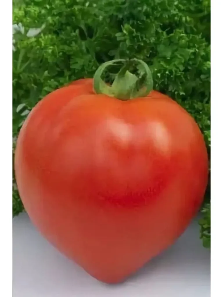 По форме томаты плоско-округлые, с выраженной, иногда складчатой ребристостью в области прикрепления к плодоножке. В фазе технической спелости они имеют светло-зеленую окраску с характерным темно-зеленым пятном у основания. По мере созревания пятно исчезает, а кожица и мякоть приобретают интенсивный, равномерный красный цвет без зеленого пятна у плодоножки.