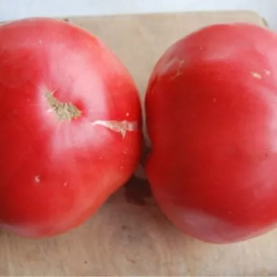 Зрелые томаты имеют насыщенный малиновый цвет. Форма плоскоокруглая, часто с заметной ребристостью в области плодоножки. Эта ребристость не является браком, а служит сортовой особенностью, подчеркивающей «мясистость» плода.