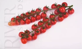 Плоды — главная сильная сторона гибрида. Они некрупные, массой 20-25 граммов, и отличаются идеально округлой, выровненной формой. В состоянии полной биологической спелости они приобретают равномерный темно-красный окрас без зеленого пятна у плодоножки, что свидетельствует о качественной генетике и полном созревании.