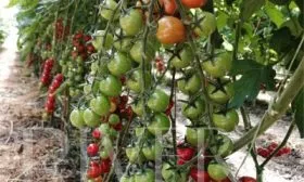 Подвязка к вертикальной опоре (шпагату или шпалерной сетке) необходима с момента высадки, так как высокорослый стебель с многочисленными кистями не способен удерживать вес самостоятельно.