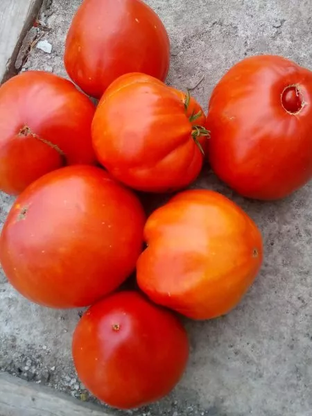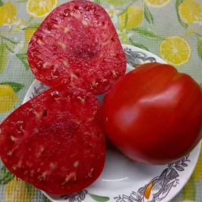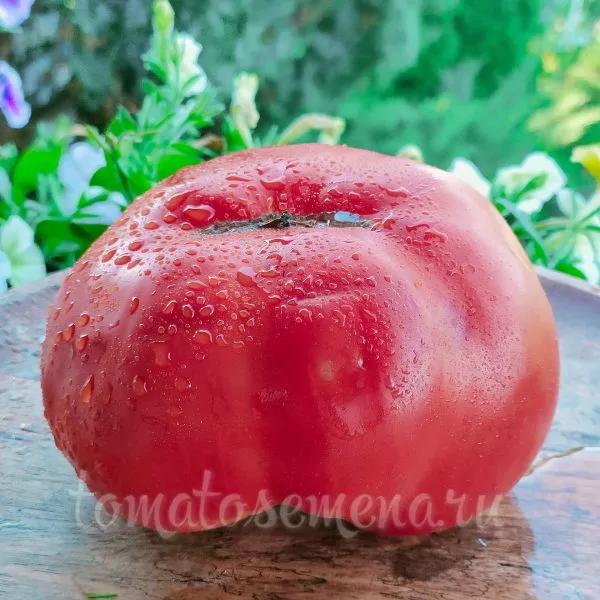 Плоды имеют характерную округло-сердцевидную форму, часто с выраженным «носиком». Полностью созревший томат приобретает насыщенный малиново-розовый цвет без зеленого пятна у плодоножки. Ключевая особенность сорта — значительный разброс в массе плодов на одном растении, напрямую зависящий от порядка кисти и агротехники.