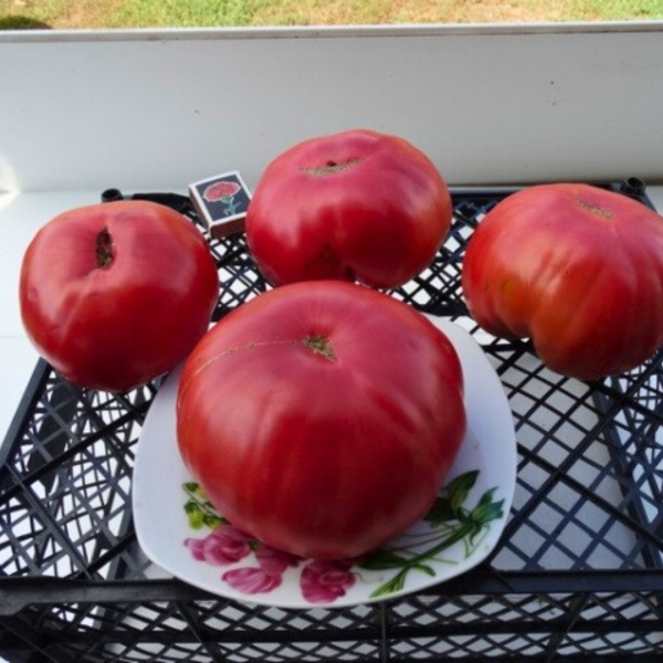 Форма плоскоокруглая, часто с заметной ребристостью в области плодоножки. Такая ребристость более выражена у самых крупных, гигантских томатов первой кисти. Плоды выравненные, что придает кисти аккуратный и презентабельный вид.